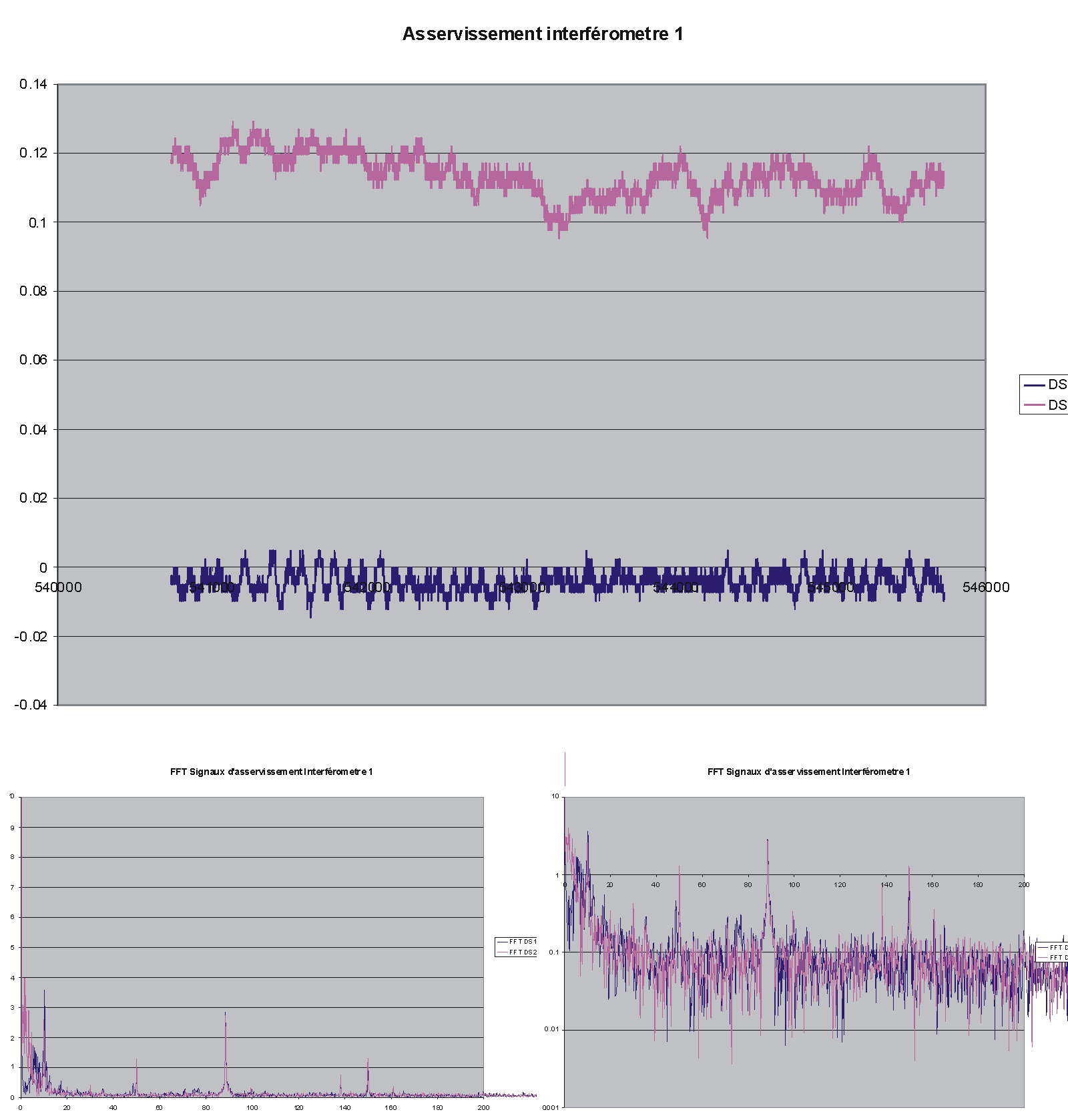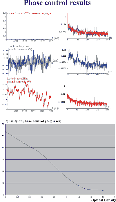 Stabilization performances are excellent and will be reported in a subsequent paper. Yet, we can show us the following result, about l/20 at 3s, but we had a lot of noise of s = 2.4 mV outside the fringes when signal during the active phase control had a residual noise of s = 3.2 mV