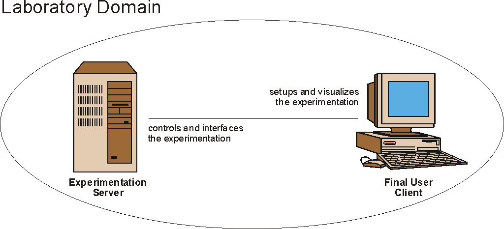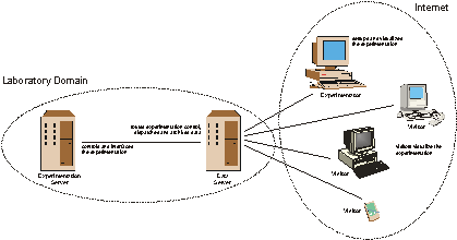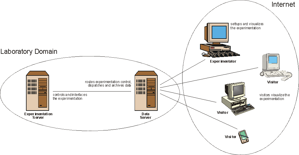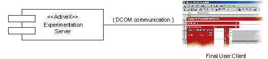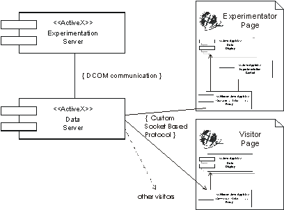 In the same way, the data server is a COM application, which play the role of a bridge between the experimentation server and the Internet: it assures the asynchronous communication with Java applets of multiple clients, those applets embedded into laboratory site web pages.
