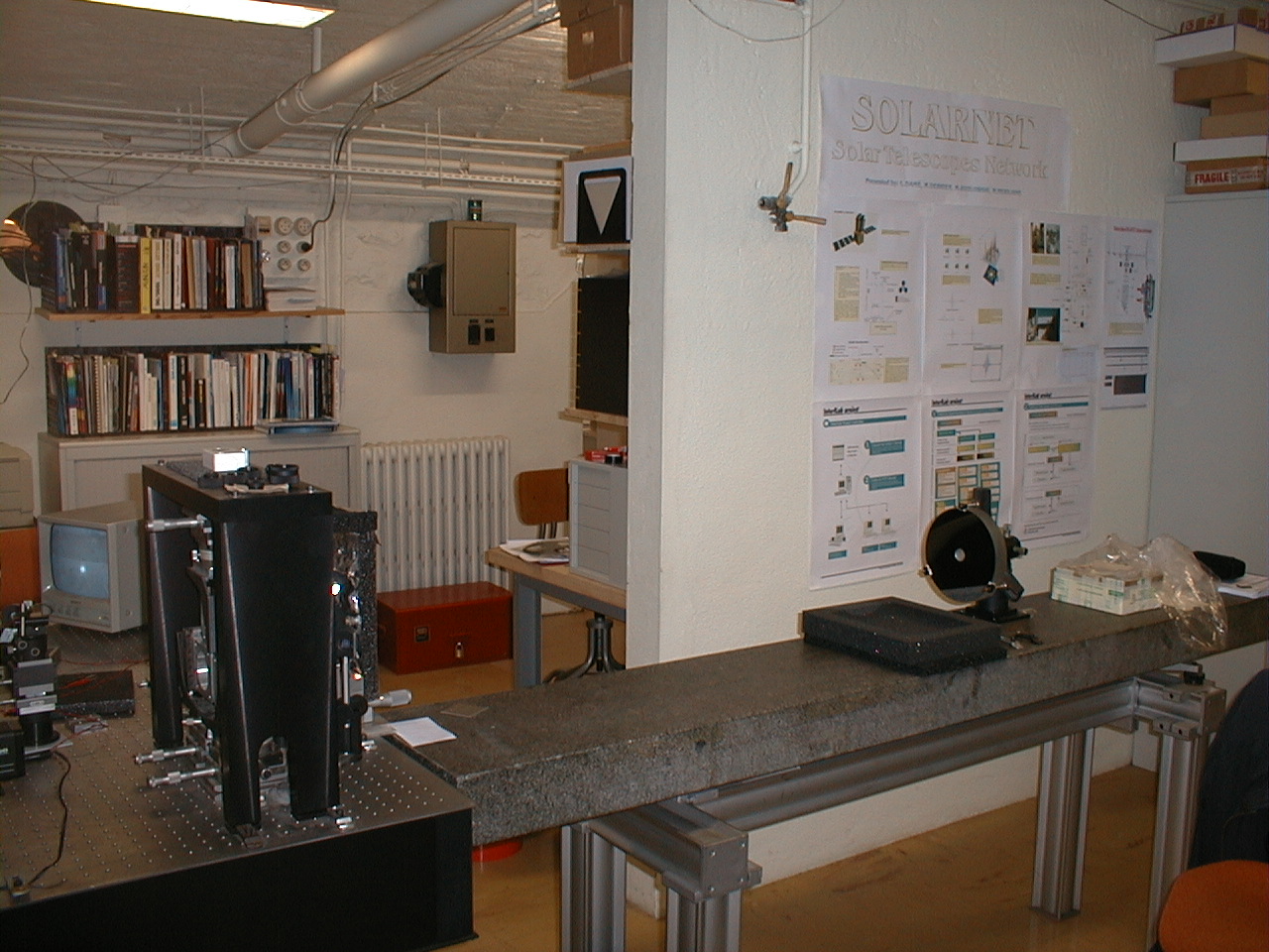 Fig. 16 - The final tesbed of SOLARNET (3-telescope complete breadboard) at the"Grand Sidérostat de Foucault" at Meudon Observatory since June 2000.