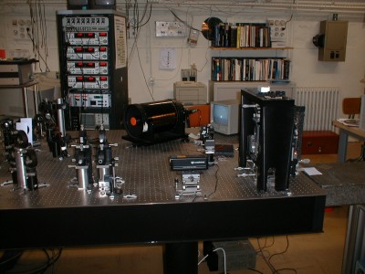 Fig. 3 – Early setup of the 2-telescope breadboard used in laboratory and on the sky in 1997.